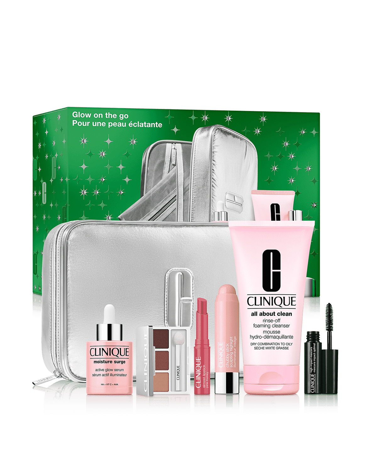 6 glow essentials in a 3-in-1 beauty bag, featuring Clinique’s most-loved makeup and skincare. A $266 value.