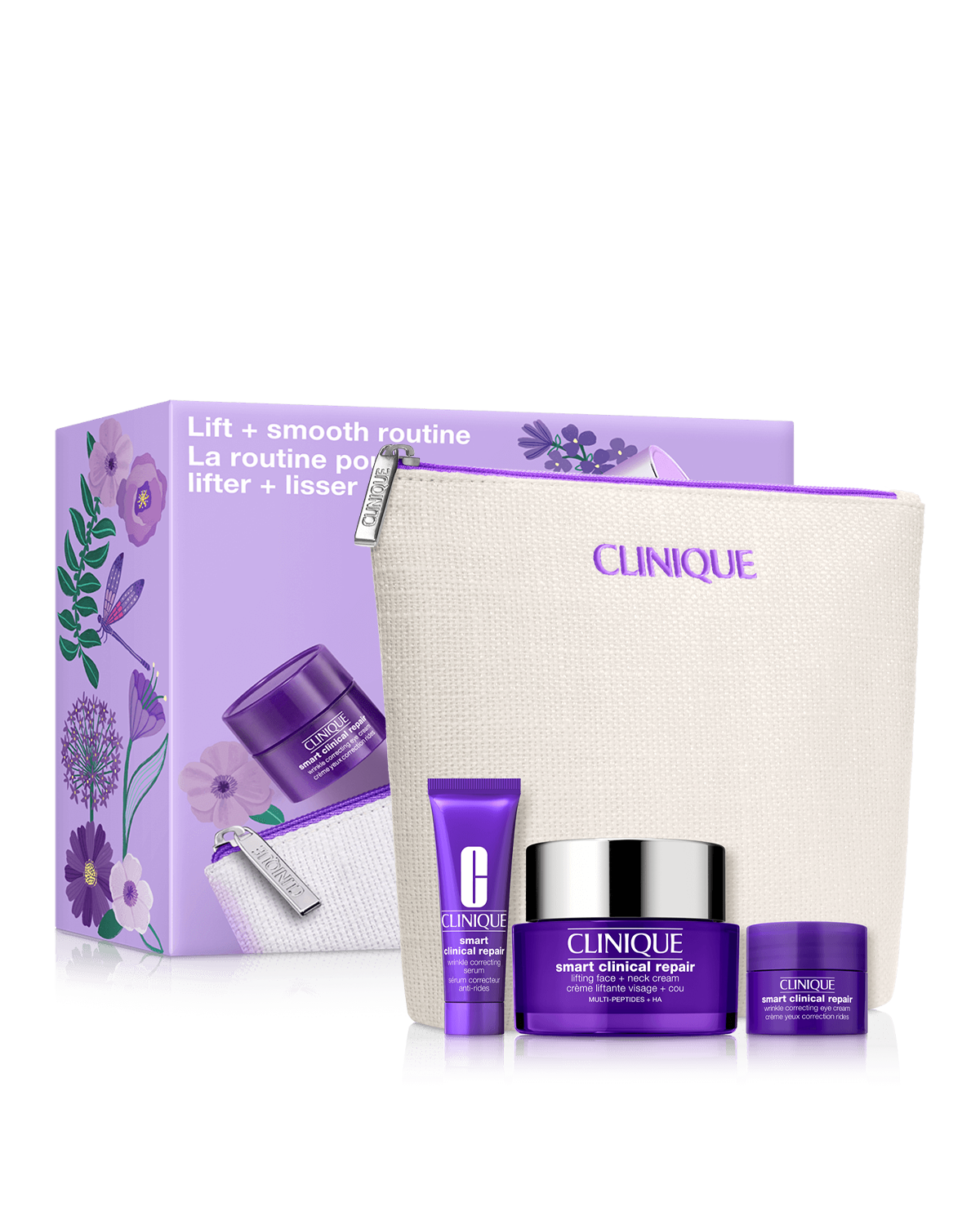 A smart de-aging trio to help visibly lift and smooth. Includes a full-size lifting face + neck cream. All in an exclusive bag.