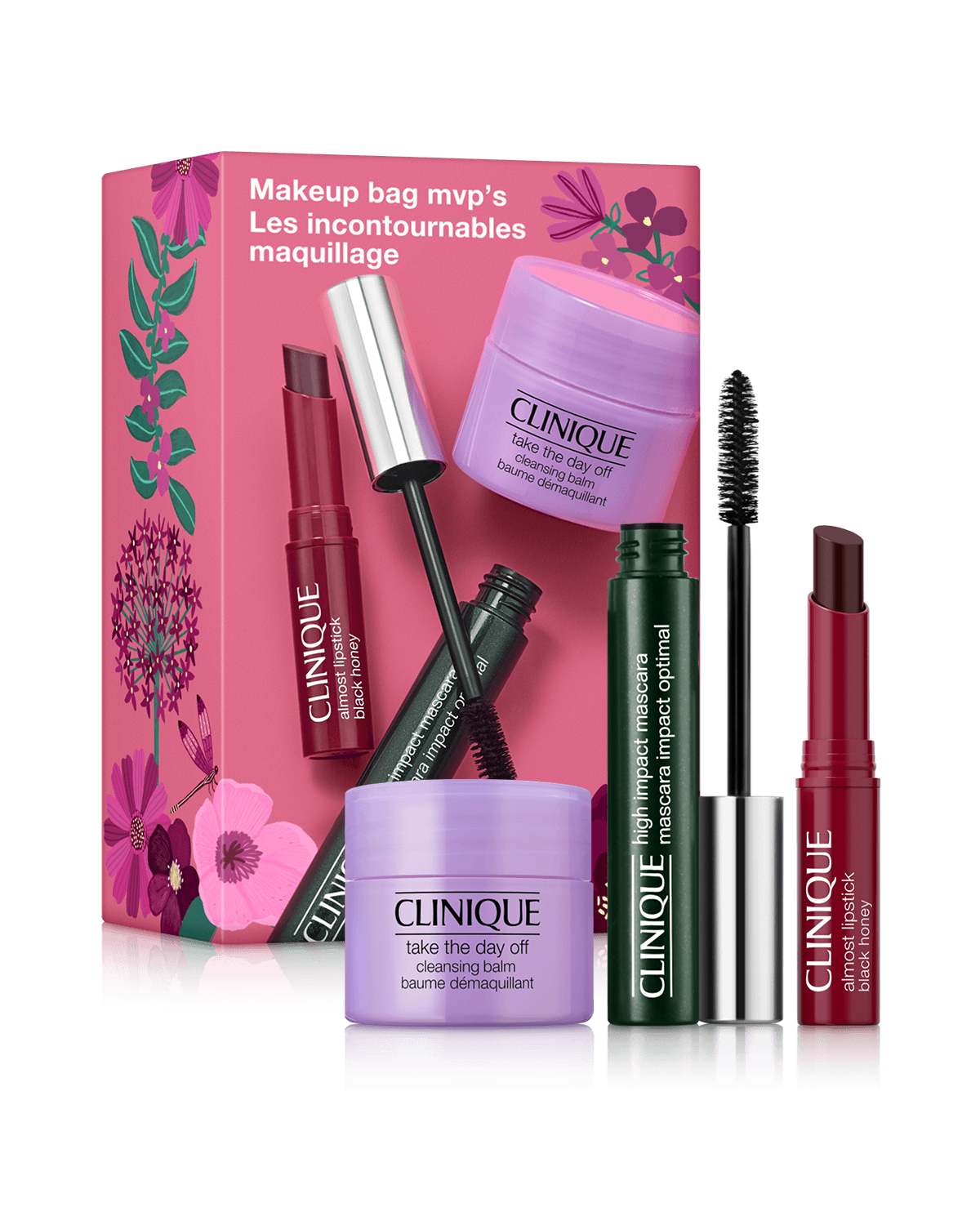 A trio of Clinique’s most-loved makeup and skincare essentials—lash drama, iconic lip color, and effortless cleansing balm.