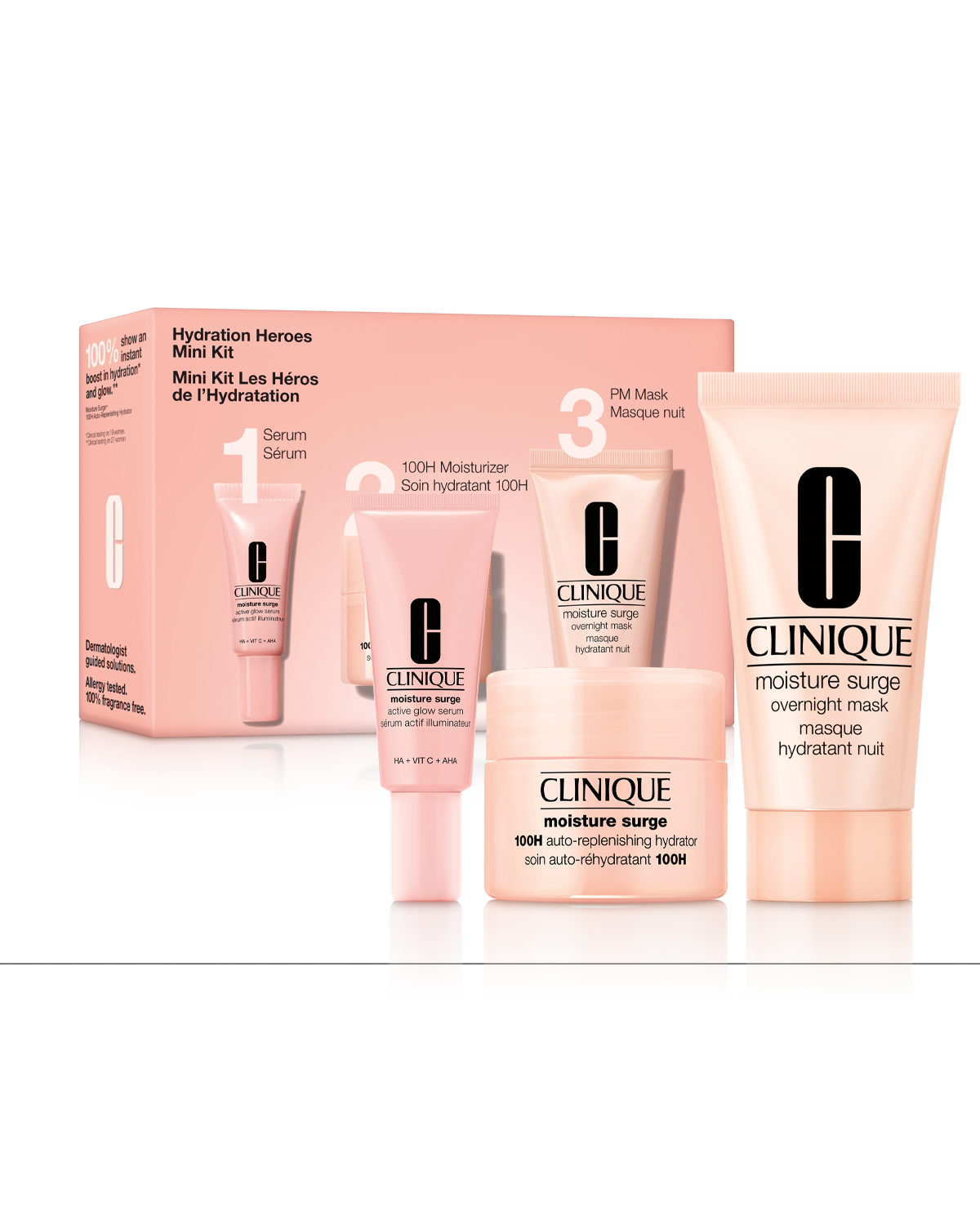 Three Moisture Surge™ hydration essentials for a dewy glow.