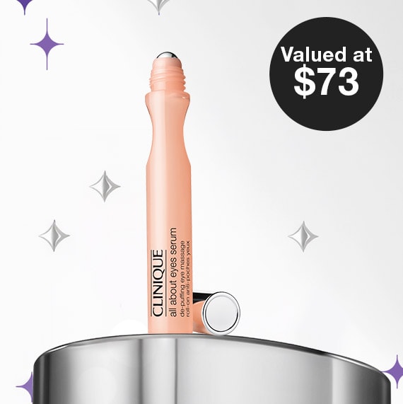 FREE All About Eyes™ Serum De-Puffing Eye Massage with $160+.* T&Cs apply.